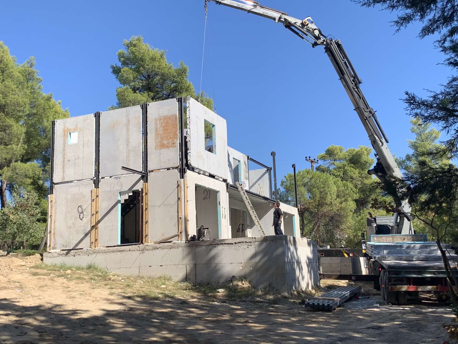 Όσο αφορά τον τρόπο δόμησης, πρόκειται για προκατασκευασμένο κτίριο βαρέως τύπου (συμμικτό), το οποίο αποτελεί μόνιμη κατασκευή. Αναλυτικότερα, στο αρχικό στάδιο της κατασκευής γίνεται η εκσκαφή και η θεμελίωση της κατοικίας. Στην συνέχεια ακολουθεί η τοποθέτηση των μεταλλικών υποστυλωμάτων τα οποία συνδέονται με την θεμελίωση μέσω αγκυρίων. Ακολούθως, τοποθετούνται τα τοιχία (τοιχοποιίες) τα οποία βασίζονται σε ένα καινοτόμο δομικό στοιχείο το οποίο αποτελεί φέρον στοιχείο αλλά και στοιχείο πλήρωσης με προηγμένες ρεολογικές, φυσικοχημικές και μηχανικές ιδιότητες. Η συνδεσμολογία γίνεται με ειδικό τρόπο ώστε να είναι εφικτή η σύνδεση μιας δομημένης κτηριακής μονάδας με σταθερό και εύκολο τρόπο. Τέλος κατασκευάζεται η στέγη. Ο θεωρητικός και πειραματικός προσδιορισμός του δομικού στοιχείου (συμμικτό, δικέλυφο τοιχίο από οπλισμένο σκυρόδεμα) υλοποιήθηκε σε συνεργασία με το τμήμα Πολιτικών Μηχανικών του Αριστοτελείου Πανεπιστήμιού Θεσσαλονίκης.